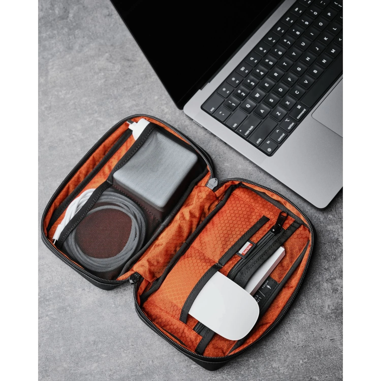 - Fits all your essential tech accessories in one slim, easy to carry pouch
