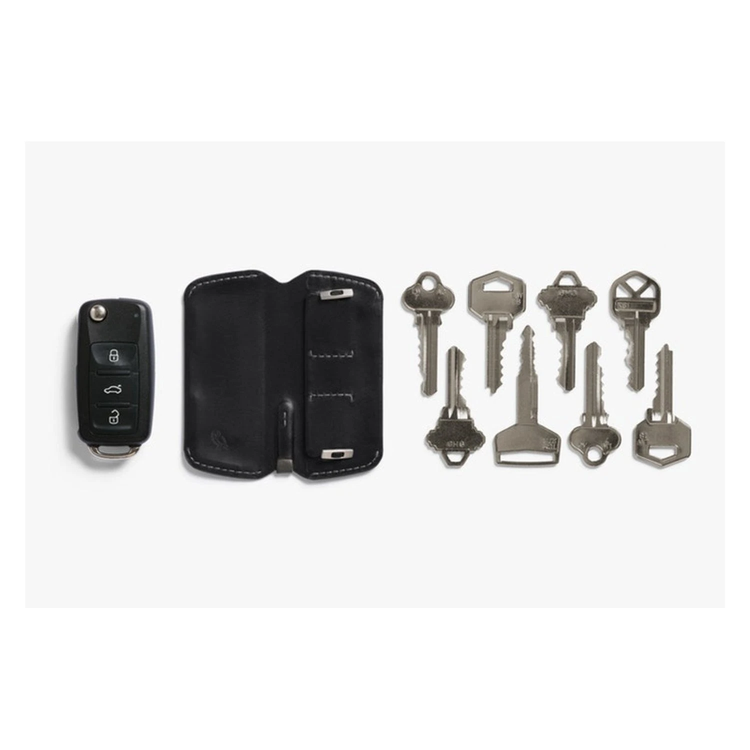 This slim leather key cover tames the jangle, protecting your pocket and keeping all your daily keys neatly at hand.
