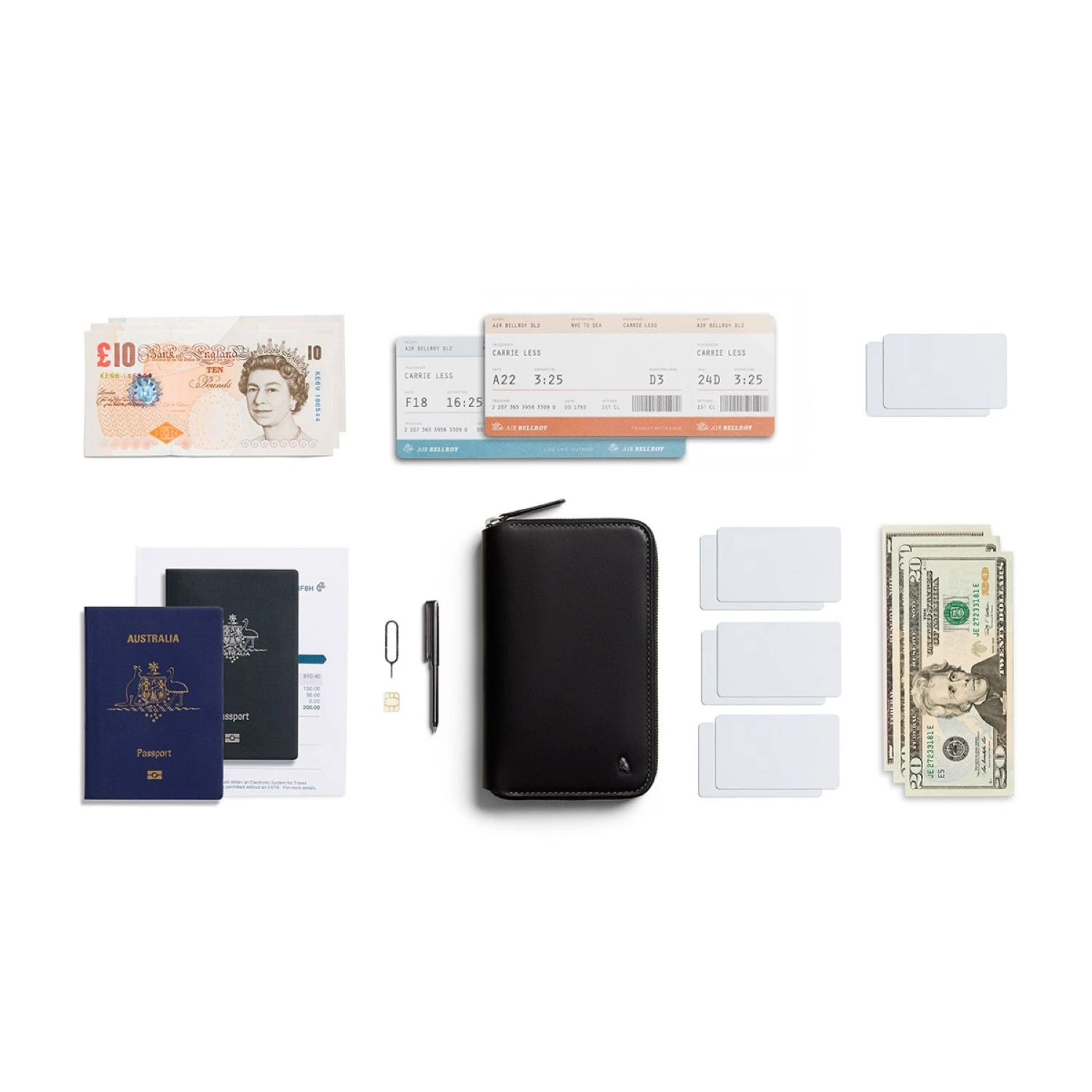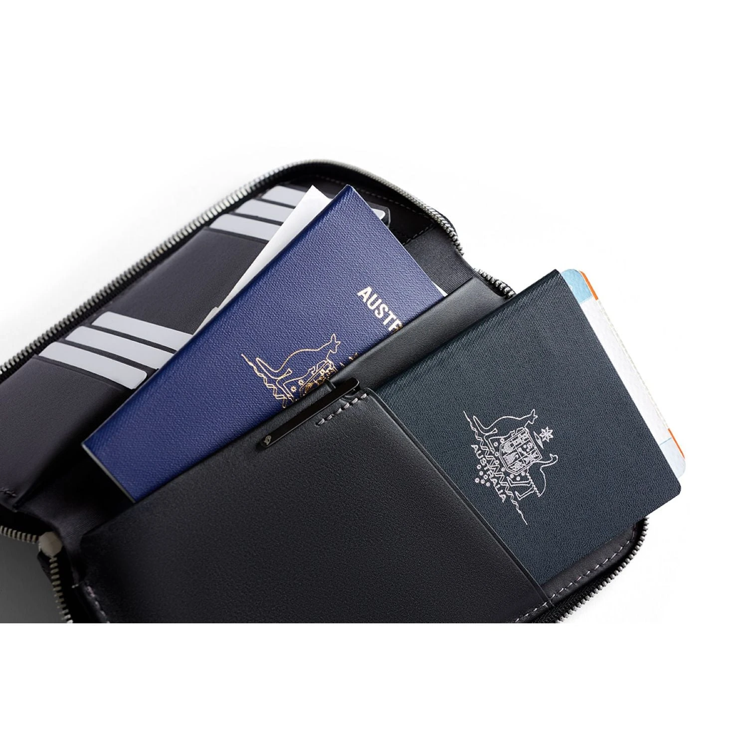 This folio keeps travel essentials at hand when you need them and zipped away when you don’t. For peace of mind on the move.