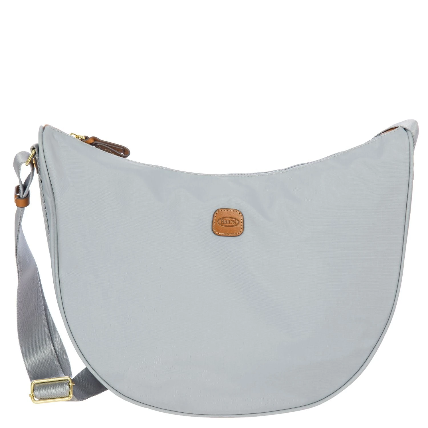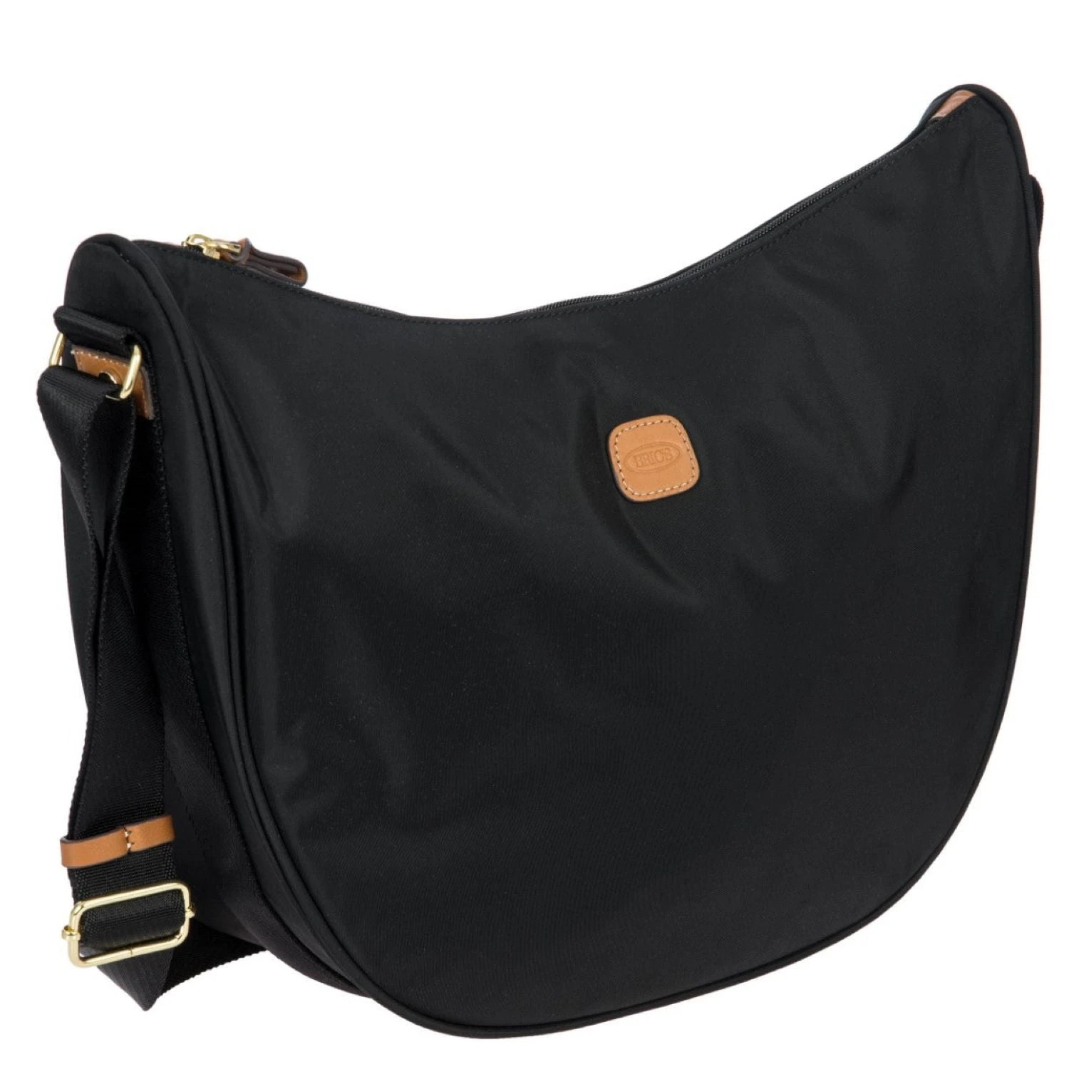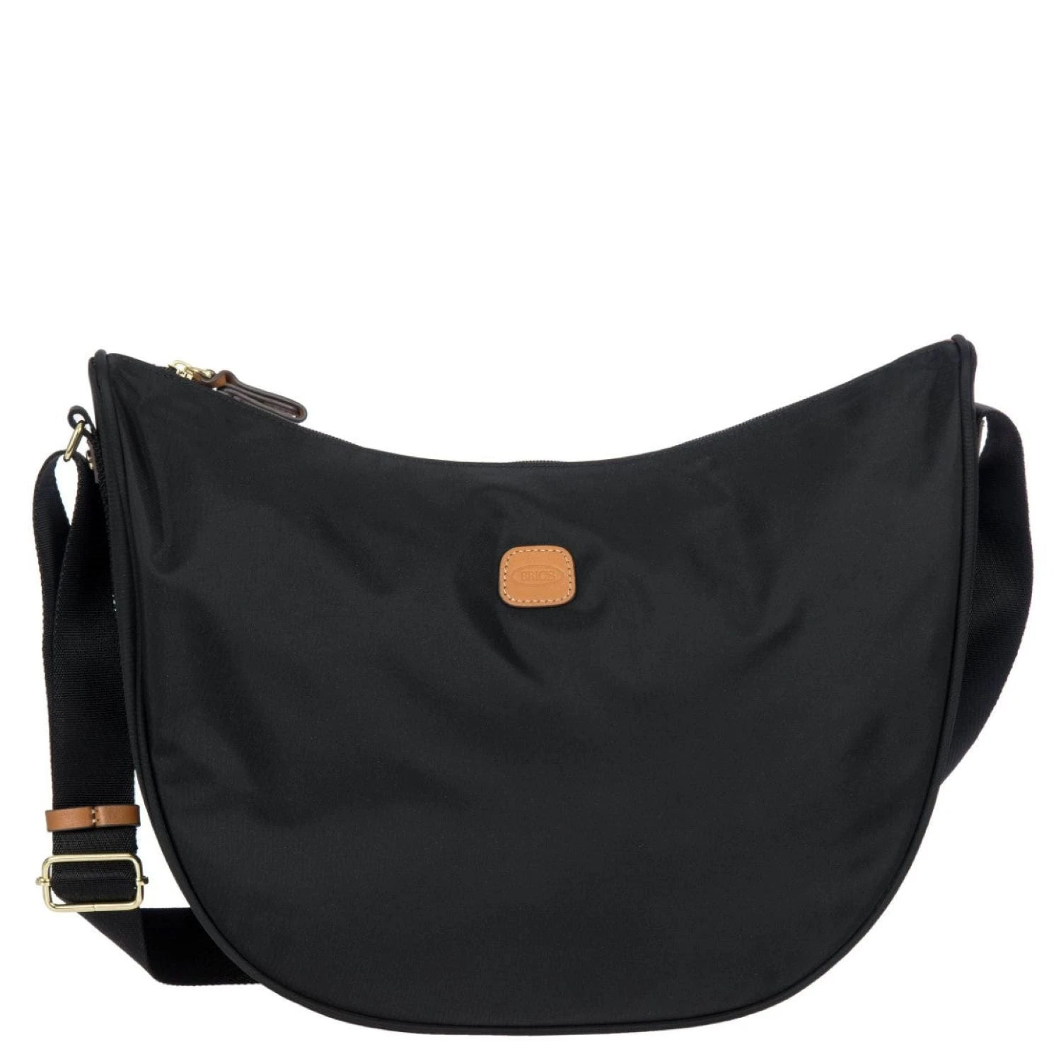 The large Halfmoon bag from the X-Collection is made of soft, lightweight and durable Nylon. Thanks to the adjustable shoulder strap, it can be comfortably carried either on the shoulder or across the body. The crescent shape is very spacious, making it ideal for everyday use. Featuring an exterior zippered pocket on the back and an internal zippered pocket, it is ideal for organising your belongings. The bag is finished with genuine leather details and fabric lining. Embellished with the iconic Bric’s logo in leather on the outside.